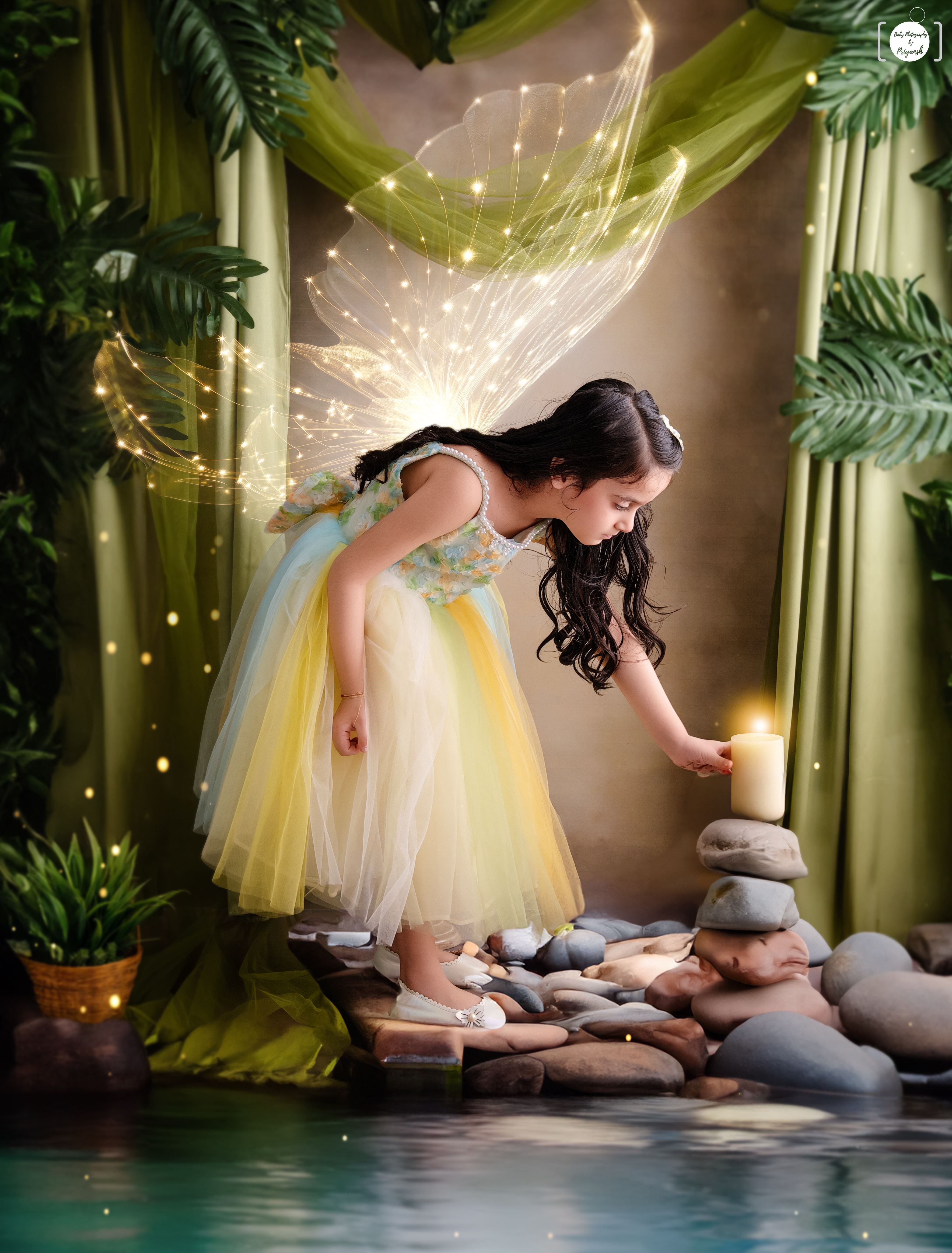 Enchanting fairy-themed baby photoshoot, magical children's portrait, fantasy photography.